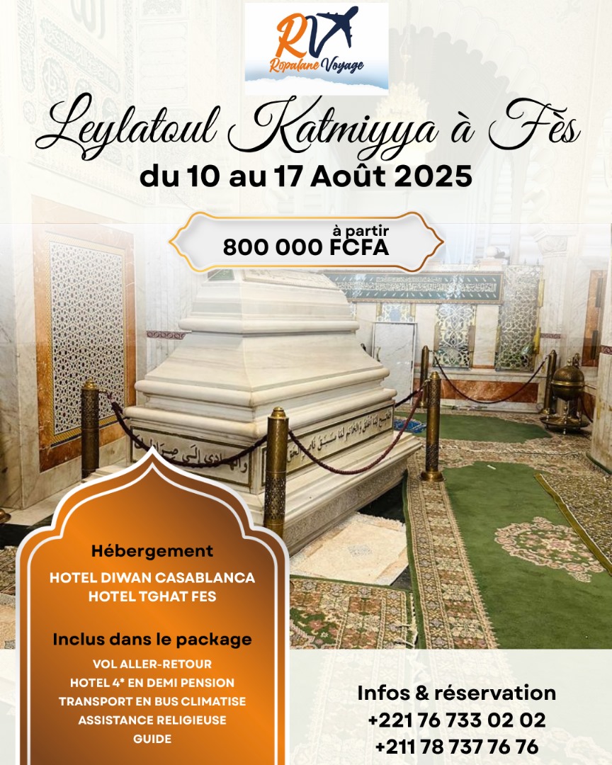Un voyage spirituel à Fès, au Maroc, pour l’occasion de Leylatoul Katmiyya. Le séjour inclut des hébergements à Casablanca et à Fès.