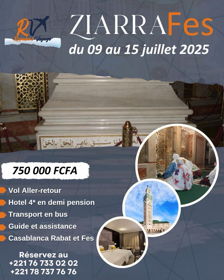 Découvrez le cœur spirituel et culturel du Maroc avec le circuit Ziarra Fès. Explorez les villes historiques de Casablanca, Rabat et Fès lors de ce pèlerinage exceptionnel. Le forfait comprend le vol aller-retour, l’hébergement en hôtel 4 étoiles en demi-pension (petit-déjeuner et un autre repas), le transport en bus et les services d’un guide. Ce voyage est idéal pour ceux qui recherchent une immersion culturelle et spirituelle enrichissante.